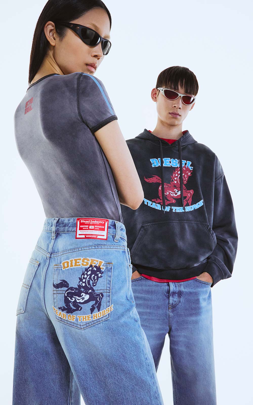 Célébrez l'Année du Cheval avec une nouvelle capsule genderless. La collection comprend du denim, des T-shirts et des hoodies arborant l'imprimé cheval, reflétant les valeurs fondamentales de Diesel : anticonformisme, expression de soi et énergie.